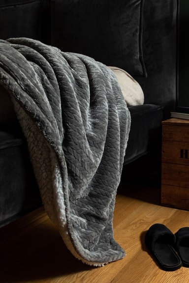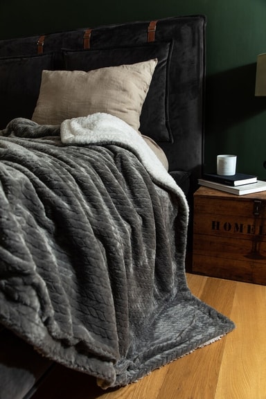 Upplev mjukheten i denna flätade sherpapläd med enfärgad ovansida och vit undersida. Med sitt mysiga och varma material är den perfekt för kalla kvällar framför tv:n eller som en extra mjuk sängfilt.Tutustu ominaisuuksiin