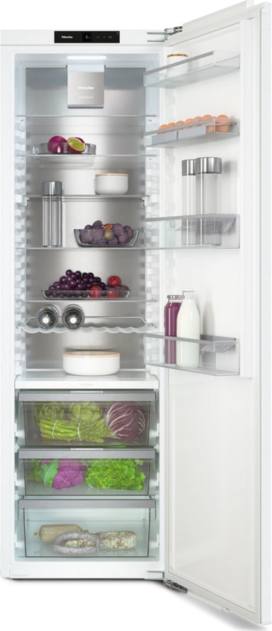 Miele-jääkaappi K 7747 C, 178 cm, kalusteisiin sijoitettava, tarjoaa PerfectFresh Pro-, DynaCool-toiminnot, nopean jäähdytyksen, Wi-Fi-yhteyden, 294 litran tilavuuden ja toimii hiljaisesti 32 dB:n melutasolla.Tutustu ominaisuuksiin