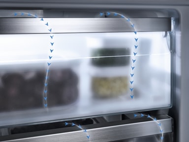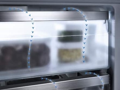 NoFrost-järjestelmän ansioista sinun ei enää koskaan tarvitse sulattaa Miele-kylmälaitettasi. Ilmankierrätyksen ansiosta kylmä ja kuiva ilma jakautuu tasaisesti koko sisätilaan, mikä ehkäisee jään muodostumista. Näin pakasteisiinkaan ei kerry jäätä, ja pakastuslalatikotkin avautuvat ja sulkeutuvat helpommin, kun pakastimen sisäpinnoilla ei ole jäätä. NoFrost tekee pakastamisesta helppoa ja säästää sinulta sulattamisen vaivan, ikuisiksi ajoiksi.
