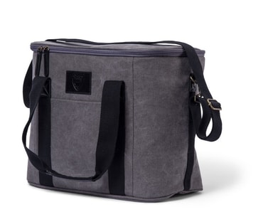 Kylbag i grovt tyg med justerbar axelrem och ordentliga handtag.Tutustu ominaisuuksiin