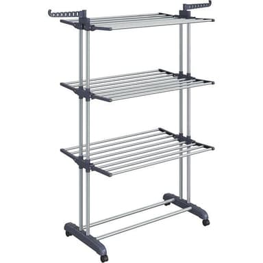 Suuri 4-tasoinen kuivausteline pyörivillä koukuilla ja pyörillä - HarmaaTutustu ominaisuuksiin
