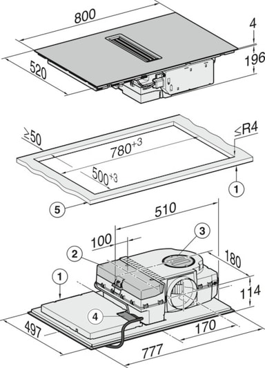 Kätevä ja kompakti, kaikkia keittoalueita ja liesituuletinta voidaan käyttää samalla ytimekkäällä numeronäytöllä.
