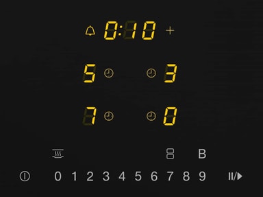 Entistä kätevämpään ruoanvalmistukseen: Stop & Go -toiminnolla voit yhden painikkeen painalluksella alentaa kaikkien keittoalueen tehon teholle 1, jos joudut poistumaan keittotason luota hetkeksi. Lämpimänäpitotoiminto pitää ruoan tarjoilulämpötilassa. Käytössäsi on myös ajastin, jolla voit asettaa keittoalueen kytkeytymään automaattisesti pois päältä valitsemasi ajan kuluttua. Recall-toiminto pitää asetuksesi muistissa 10 sekunnin ajan.