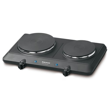 Kannettava sähkökeittolevy kahdella keittolevyllä on täydellinen matkailuun. Sopii kaikille tarvikkeille ja kattiloille. Siinä on kaksi erillistä 9 tehon säätönappia molemmille levyille omansa.