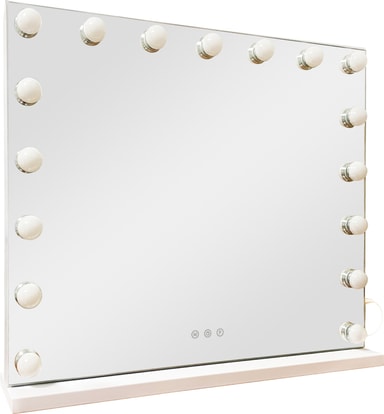 A Home Hollywood -peilissä on 17 LED-lamppua, kolme valoväriä ja säädettävä kirkkaus. Se voidaan asettaa pöydälle tai kiinnittää seinälle. Mukana jalusta ja DC-virtajohto.Tutustu ominaisuuksiin