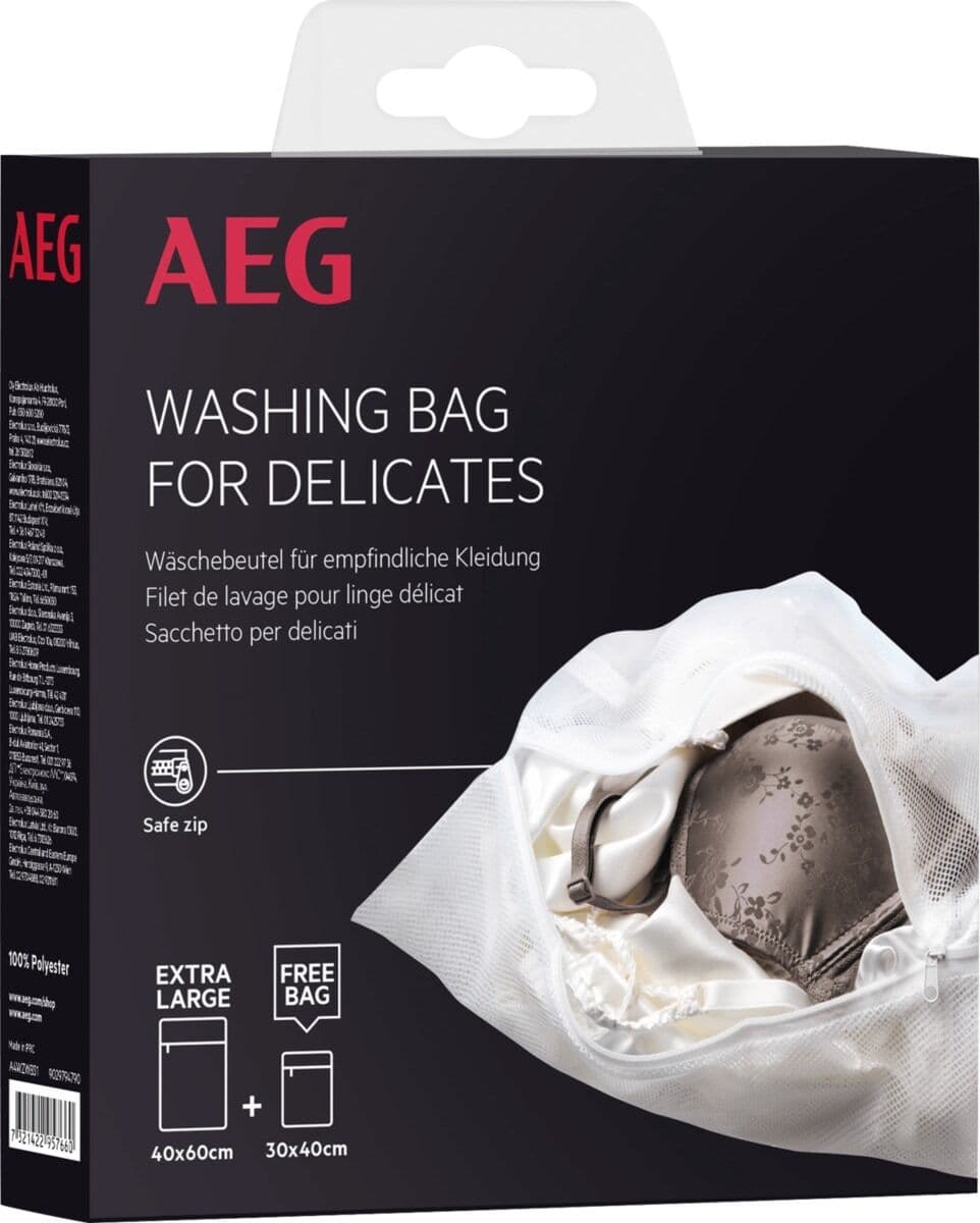 AEG pyykinpesupussit. Suojaavat herkimpiä vaatekappaleitasi pesussa ja saavat ne kestämään kauemmin. Sisältää 1 x 40x60 cm pussi ja 1 x 30x40 cm pussi.Tutustu ominaisuuksiin