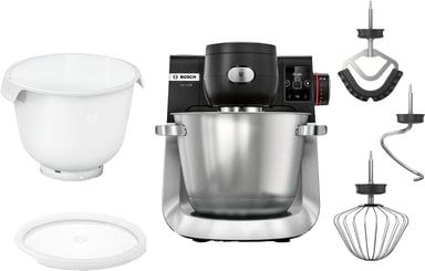 1600 watin Bosch Series 6 -yleiskoneessa on ruostumattomasta teräksestä valmistettu suuri 5,5 litran kulho, se voi käsitellä jopa 3,5 kg taikinaa ja siinä on 7 nopeusasetusta nopeaa ja tehokasta sekoittamista varten.Tutustu ominaisuuksiin