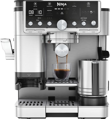 Tee kuumia tai kylmiä juomia kotona 1650 watin Ninja Luxe Café Pro -kahvikoneella. Siinä on 2 litran vesisäiliö, 250 g papusäiliö, 25 jauhatusasetusta ja 15 baarin paine, jotta voit valmistaa täyteläistä, kahvilatyyppistä kahvia helposti.Tutustu ominaisuuksiin