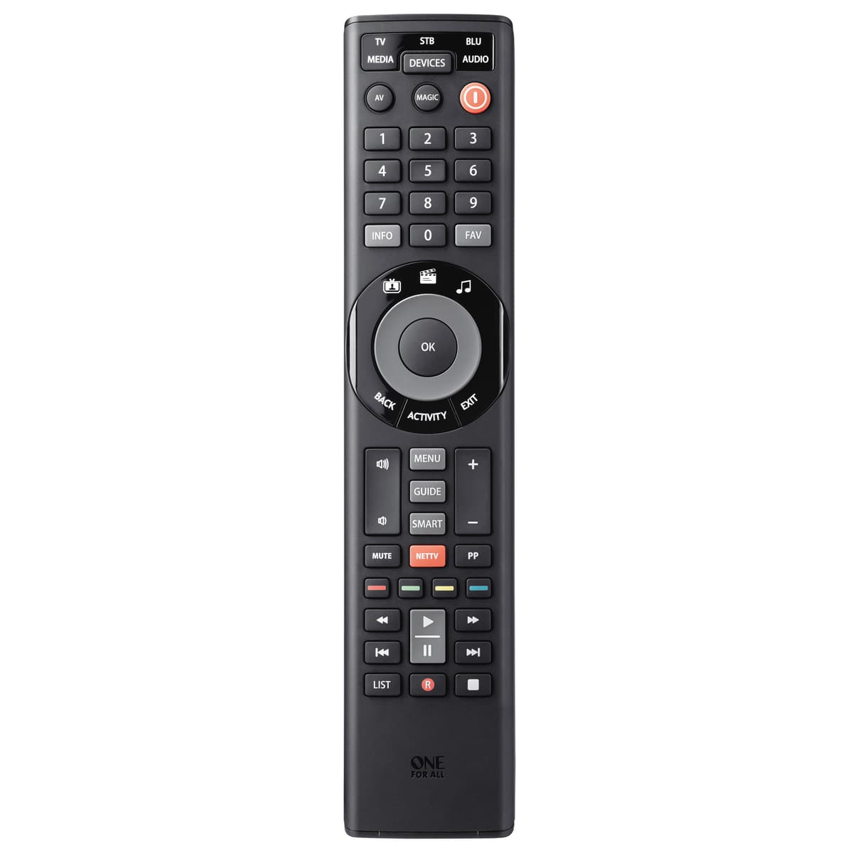 One For All Smart Control 5 -yleiskaukosäätimen avulla hallitset jopa 5 eri laitetta. Kaukosäädin on helppo asentaa, ja siinä on kätevä NETTV-nappi, jonka avulla pääset helposti käsiksi suoratoistopalveluihin.Tutustu ominaisuuksiin