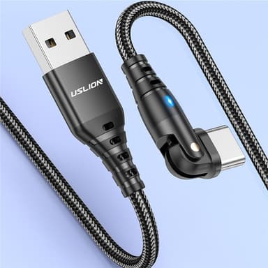 • USB-A - USB-C -latauskaapeli 2 m, 180 astetta kääntyvä kulmapää, 3A