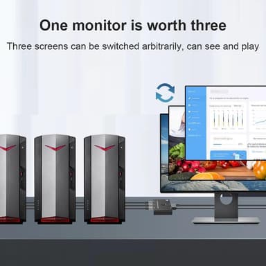 Switch-tilassa voit valita, mikä kolmesta lähteestäsi näytetään näytöllä yksinkertaisella painikkeen painalluksella, ja jakajatilassa voit valita, mikä kolmesta yhdistetystä näytöstä näyttää lähteesi. Huomaa, että vain yksi näyttö on aktiivinen kerrallaan jaetussa tilassa.