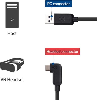 Laadukas kaapeli vahvistetulla erityisellä vedonpoistolla ja alumiinikotelolla takaavat pidemmän käyttöiän. 90 asteen kulmassa olevan muotoilun ansiosta pelien pelaaminen on mukavampaa. Signaali on yksisuuntainen PC:ltä VR-kuulokkeisiin.