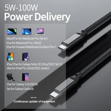 NÖRDIC 2m USB3.2 Gen2 USB-C - C nylon punottu kaapeli pikalataus Power Deliveryllä PD100W 10Gbps 5A ja Emarker blackTutustu ominaisuuksiin