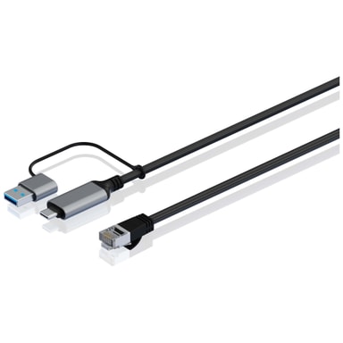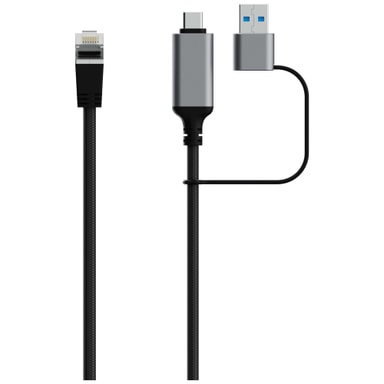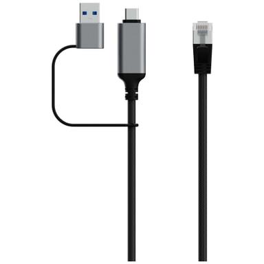 Sandstrøm USB-C - Ethernet + USB-A kaapeli (2 m)