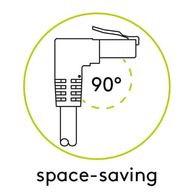 • Kahdella 90° suorakulmaisella RJ45-liittimellä varustettu kaapeli on ihanteellinen ratkaisu ahtaisiin tiloihin.
