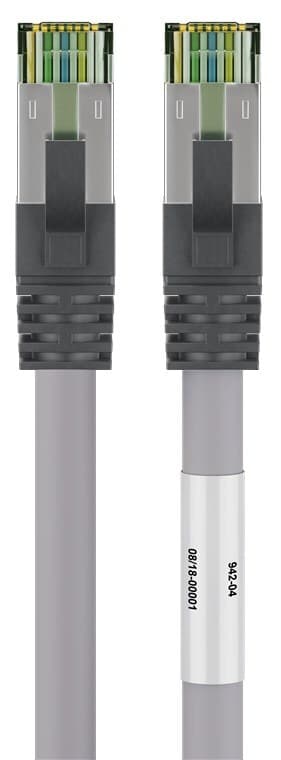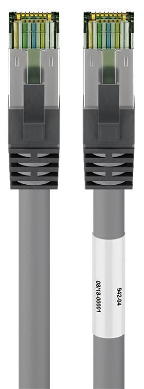 RJ45 (CAT 6A, 500 MHz) patch-kaapeli CAT 8.1 S/FTP -raakakaapelilla, harmaa