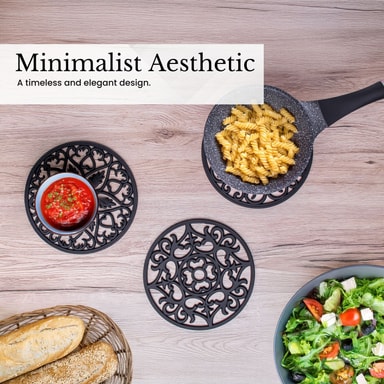 Suojaa pinnasi kuumilta kattiloista ja kattiloista näillä tyylikkäillä lasinaluseilla. Tyylikkään koristeellisen ulkonäön ansiosta lasinaluset sopivat myös lautasmatoiksi ja koristelasiksi. Lasinaluset ovat kestäviä ja lämmönkestäviä, joten niille voi turvallisesti sijoittaa kuumat kattilat, kannut, astiat, kulhot, uunipellit ja paljon muuta . Silikoni tekee matosta liukumattoman myös tasaisilla pinnoilla. Lisäksi kattilansuojat voidaan helposti ja yksinkertaisesti puhdistaa käsin tai astianpesukoneessa.