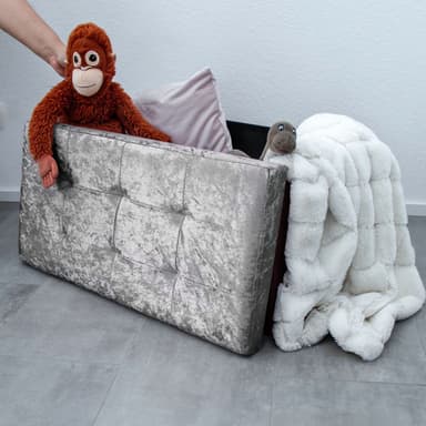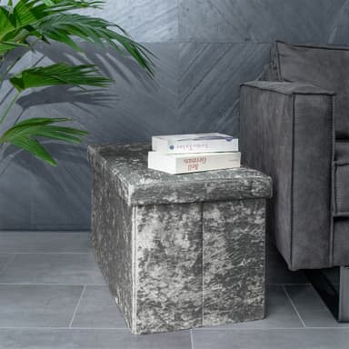 Jakkara samettipäällyksellä. Taitettava säilytystilalla. Korkea vakaus. Helppo koota taittojärjestelmän ansiostaTutustu ominaisuuksiin