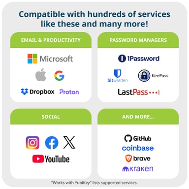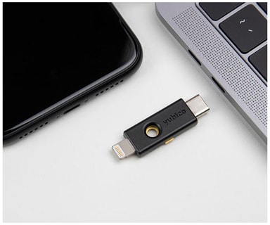 Yubico YubiKey -turva-avain tarjoaa kannettavan turvallisuuden kahdella USB-C/Lightning-liittimellä, saumattomalla monivaiheisella todennuksella ja FIDO2-yhteensopivuudella, mikä takaa phishing-suojauksen kaikilla laitteilla ja alustoilla.Tutustu ominaisuuksiin