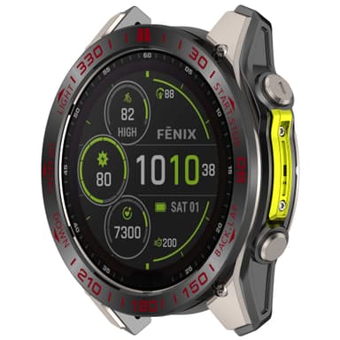 Saumaton integrointi: Tämä erityisesti Garmin Fenix 8 -kelloon suunniteltu ruostumattomasta teräksestä valmistettu kehys tarjoaa saumattoman ja tarkan istuvuuden. Se integroituu moitteettomasti kellon olemassa olevaan muotoiluun säilyttäen täyden pääsyn kaikkiin painikkeisiin, antureihin ja ominaisuuksiin. Kevyt rakenne varmistaa, että kehys lisää laitteeseesi vain vähän massaa tai painoa tarjoten mukavan ja huomaamattoman käyttökokemuksen. Nauti parannetusta suojasta ja tyylistä tinkimättä toiminnallisuudesta tai mukavuudesta.