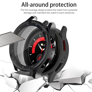 Suojaa kelloasi: Tämä kotelo on yhteensopiva Samsung Watch 5 Pron kanssa ja suojaa kelloasi naarmuilta, kolhuilta ja pudotuksilta.