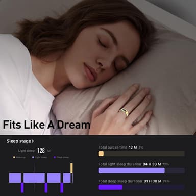Intelligent SömnspårningUpplev sömnövervakning på en ny nivå med denna smarta ring. Den registrerar automatiskt när du somnar, vaknar och analyserar din sömnkvalitet (djup/lätt sömn) genom tydliga grafer i appen.Tutustu ominaisuuksiin