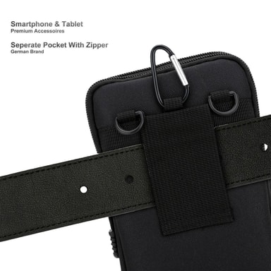 Molle EDC pussi Alcatel 7:lle tarjoaa optimaalisen säilytystilan: kaksinkertaiset vetoketjulokerot, kaksi sisätaskua, liukutasku ja kynäteline tarjoavat runsaasti tilaa. Etutasku sopii enintään 6,7 tuuman matkapuhelimille.