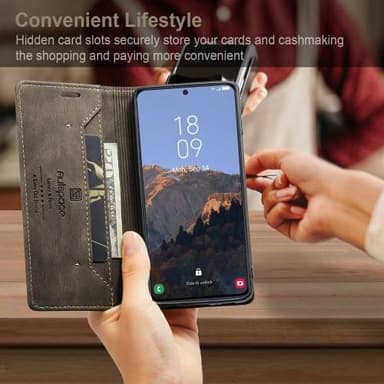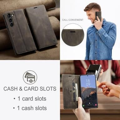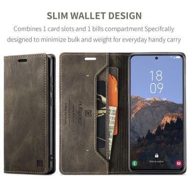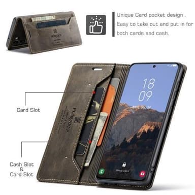 AUTSPACE A01 -sarja Samsung Galaxy S23+ (Plus) RFID-estävä puhelinkotelo Retro Texture PU-nahkainen lompakkojalusta Matta Flip -puhelimen kansi - Kahvi Premium PU-nahka ja pehmeä TPU-sisäkotelo, jossa on matta rakenne, tarjoavat herkän kosketustunteeTutustu ominaisuuksiin