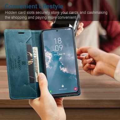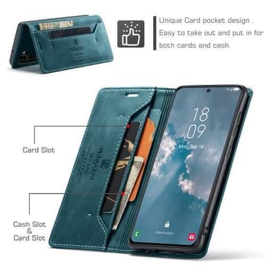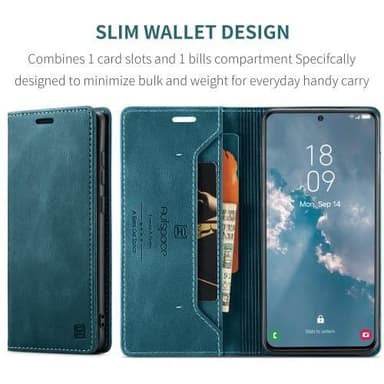 AUTSPACE A01 -sarja Samsung Galaxy S23+ (Plus) RFID-estävä puhelinkotelo Retro Texture PU-nahkainen lompakkojalusta Matta Flip -puhelimen kansi - Sininen Premium PU-nahka ja pehmeä TPU-sisäkotelo, jossa on matta rakenne, tarjoavat herkän kosketustuntTutustu ominaisuuksiin