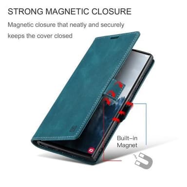 AUTSPACE A01 -sarja Samsung Galaxy S23 Ultra RFID -estävä pudotusta estävä puhelinkotelo Retro Texture PU-nahkainen lompakkojalusta Matta Flip -puhelimen kansi - sininen Premium PU-nahka ja pehmeä TPU-sisäkotelo, jossa on matta rakenne, tarjoavat herTutustu ominaisuuksiin