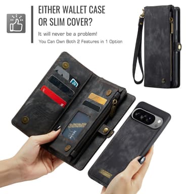 CaseMe Google Pixel 10 Pro XL 008 BIg Wallet 2in1 Magnet Lompakkokotelo - Musta