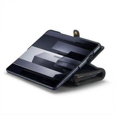 Tyylikäs ja käytännöllinen kännykkälaukku, jossa on tilaa 5 luottokortille, setelitasku ja kolikkotasku. Matkapuhelin asennetaan mallikohtaiseen puhelimen kuoreen, joka pitää puhelimen paikoillaan kotelossa. Magneettilukko pitää kotelon suljettuna. Pääsy puhelimen toimintoihin.