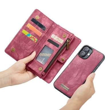 Tyylikäs ja käytännöllinen puhelinkotelo, jossa on tilaa luottokorteille, seteleille ja kolikoille. Puhelin kiinnitetään magneettisesti irrotettavaan suojakuoreen, mikä tekee puhelimen poistamisesta kotelosta helppoa, täydellinen nopeita puheluita varten tai kun haluat erottaa puhelimen ja puhelinkotelon. Piilotettu magneettilukko pitää kotelon suljettuna. Pääsy puhelimen toimintoihin.