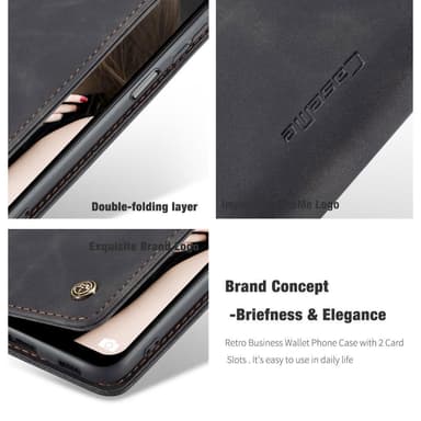 CASEME 013 -sarjan automaattisesti imeytyvä kuori lompakolla iPhone 13 Prolle - Musta Lompakon tyyli: 2 korttipaikkaa + 1 käteistasku Voidaan muuntaa tukitelineeksi Automaattisesti imeytyvä magneettinen sulkemisjärjestelmä Kattava yleissuojaus HelppoTutustu ominaisuuksiin