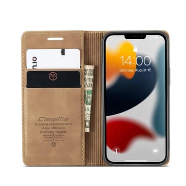 CASEME Retro Lompakkokotelo iPhone 13 - Ruskea