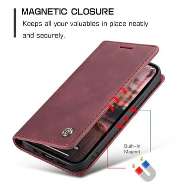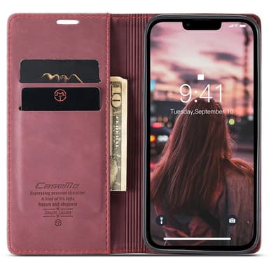 CASEME 013 -sarjan lompakkotoiminto PU-nahka+TPU-matkapuhelimen kuori Automaattisesti imeytyvä magneettinen sulkukotelo iPhone 15 Plus:lle - Pun ainen Premium PU-nahka ja pehmeä TPU-sisäkotelo tarjoaa herkän kä den tuntuisen lompakon muotoilu: 2 kortTutustu ominaisuuksiin