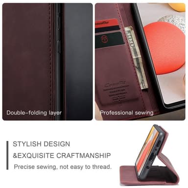 CASEME 013 -sarjan automaattisesti imeytyvä kuori lompakolla Samsung Galaxy S21:lle - Viininpunainen Lompakon tyyli: 2 korttipaikka+1 käteistasku Voidaan muuntaa tukitelineeksi Automaattisesti imeytyvä magneettinen sulkemisjärjestelmä Kattava yleissuTutustu ominaisuuksiin