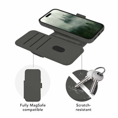 dbramante1928 Lynge MS ICON iPhone 17 Pro Max -lompakkokotelo parantaa laitteesi suojausta. Sisäänrakennetulla MagSafe-magneetilla ja irrotettavalla sisäkuorella varustettu kotelo muuntuu helposti lompakkokotelosta minimalistiseksi nahkakoteloksi.Tutustu ominaisuuksiin