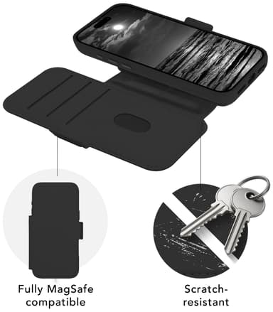 dbramante1928 Lynge MS ICON iPhone 17 Pro Max -lompakkokotelo parantaa laitteesi suojausta. Sisäänrakennetulla MagSafe-magneetilla ja irrotettavalla sisäkuorella varustettu kotelo muuntuu helposti lompakkokotelosta minimalistiseksi nahkakoteloksi.Tutustu ominaisuuksiin