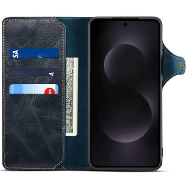 Denior lompakkokotelo nahkaa Samsung Galaxy S25 Edge - SininenTutustu ominaisuuksiin