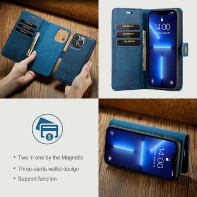 Nahkalompakkokotelo, jossa on magneettisesti irrotettava sisäkuori.