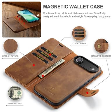 DG MING iPhone Air 2-in-1 Magneetti Lompakkokotelo - Ruskea