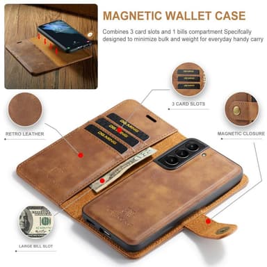 DG MING Samsung S22 2-in-1 magneetti lompakkokotelo - Ruskea