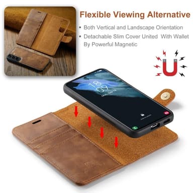 Nahkalompakkokotelo, jossa on magneettisesti irrotettava sisäkuori.Tutustu ominaisuuksiin