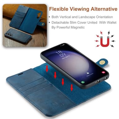 Nahkalompakkokotelo, jossa on magneettisesti irrotettava sisäkuori.