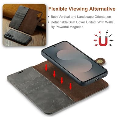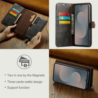 Tämä 2-in-1 magneettinen suojakotelo tarjoaa sekä elegantin nahkakotelon että tukevan PC-taustakuoren. Käytä niitä yhdessä tai erikseen tarpeesi mukaan. Käytännöllisessä nahkakotelossa on tilaa kolmelle kortille ja seteleille. Turvallinen sulkeminen suojaa arvoesineitäsi, ja sisäänrakennettu jalustatoiminto helpottaa videoiden katselua. Voit jopa puhua puheluita kotelon ollessa suljettuna älykkään etuosan leikkauksen ansiosta.