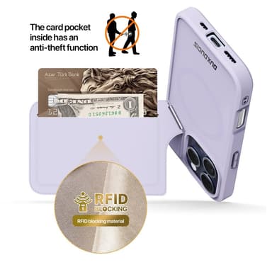 Koe tyylikkyys ja toiminnallisuus tässä Magsafe-yhteensopivassa kuoressa. Sisäänrakennetut magneetit kiinnittävät sen tukevasti puhelimeesi tehokasta latausta varten. Se tarjoaa tilaa jopa kahdelle kortille ja suojaa niitä RFID-estoteknologialla. Valmistettu korkealaatuisista materiaaleista, kuten TPU: sta, PU-nahasta ja ruostumattomasta teräksestä, se tarjoaa vankan suojan ja mukavan otteen.