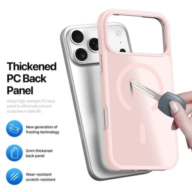 Koe vertaansa vailla oleva yhdistelmä mukavuutta ja tyyliä tässä kuoressa. Pehmeä TPU-reuna tarjoaa miellyttävän otteen, kun taas matta PC-takapaneeli tuntuu miellyttävältä ihoa vasten. Kotelon vahvat magneetit tekevät siitä yhteensopivan MagSafen kanssa, mikä mahdollistaa nopean ja helpon latauksen. Vahvistettu muotoilu suojaa puhelintasi naarmuilta ja putoamisilta, samalla kun koholla olevat reunat näytön ja kameran ympärillä tarjoavat lisäsuojaa.