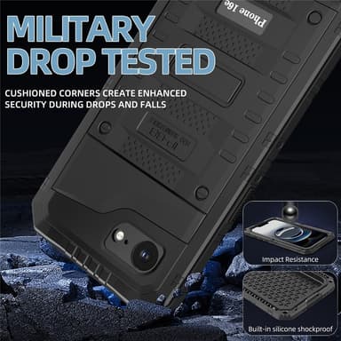 • IP68-vedenpitävä metalli- ja silikonikuori iPhone 16e:lle näytönsuojalla