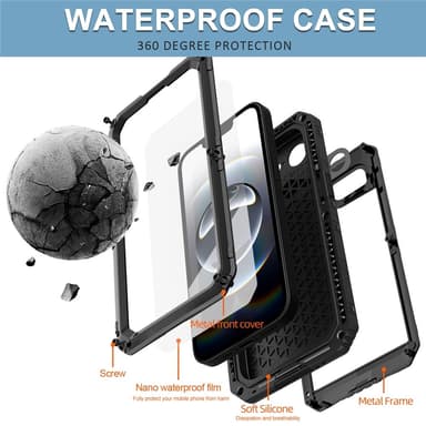 IP68-vedenpitävä metalli- ja silikonikuori iPhone 16e:lle näytönsuojalla
